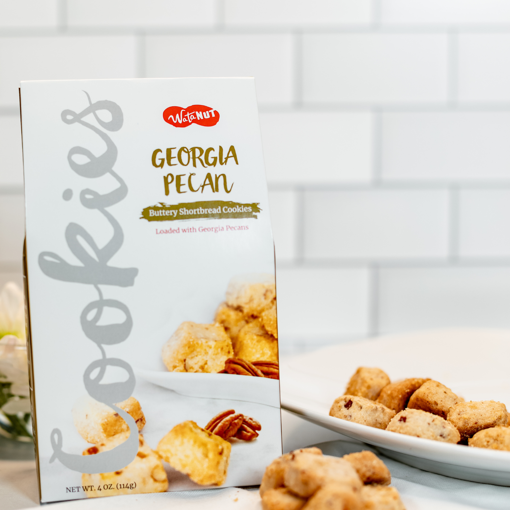 Made from scratch, our buttery shortbread cookies are loaded with Georgia Pecans and simply melt in your mouth. The freshest ingredients and a dusting of demerara sugar makes our pecan shortbread cookies unbelievably light, delicate and crisp.