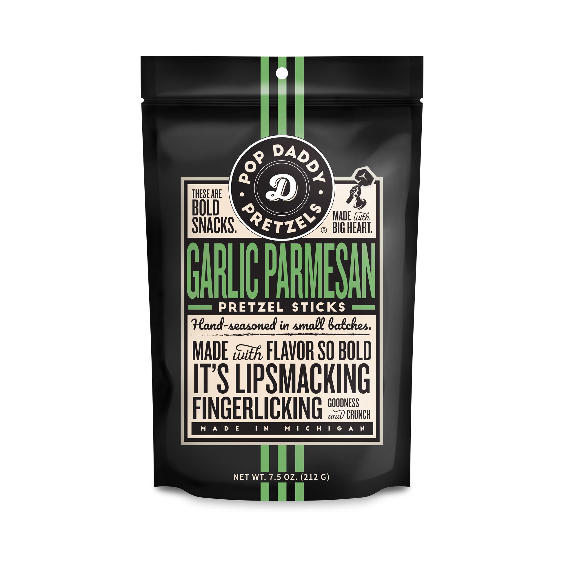 Pop Daddy – Garlic Parmesan Seasoned Pretzels 7.5oz Large Bag