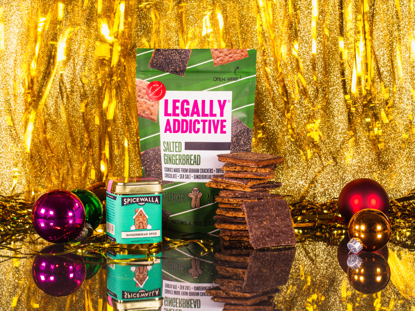 Salted Gingerbread is the newest member of our cookie fam and is joining us for the holidays! This creatively comforting confection is made from a graham cracker, our salted handmade toffee and 60% chocolate. It's made in collaboration with our neighbors and spice-geniuses, Spicewalla, to create the most divinely delicious treat that captures the flavor of the holidays in every bite!