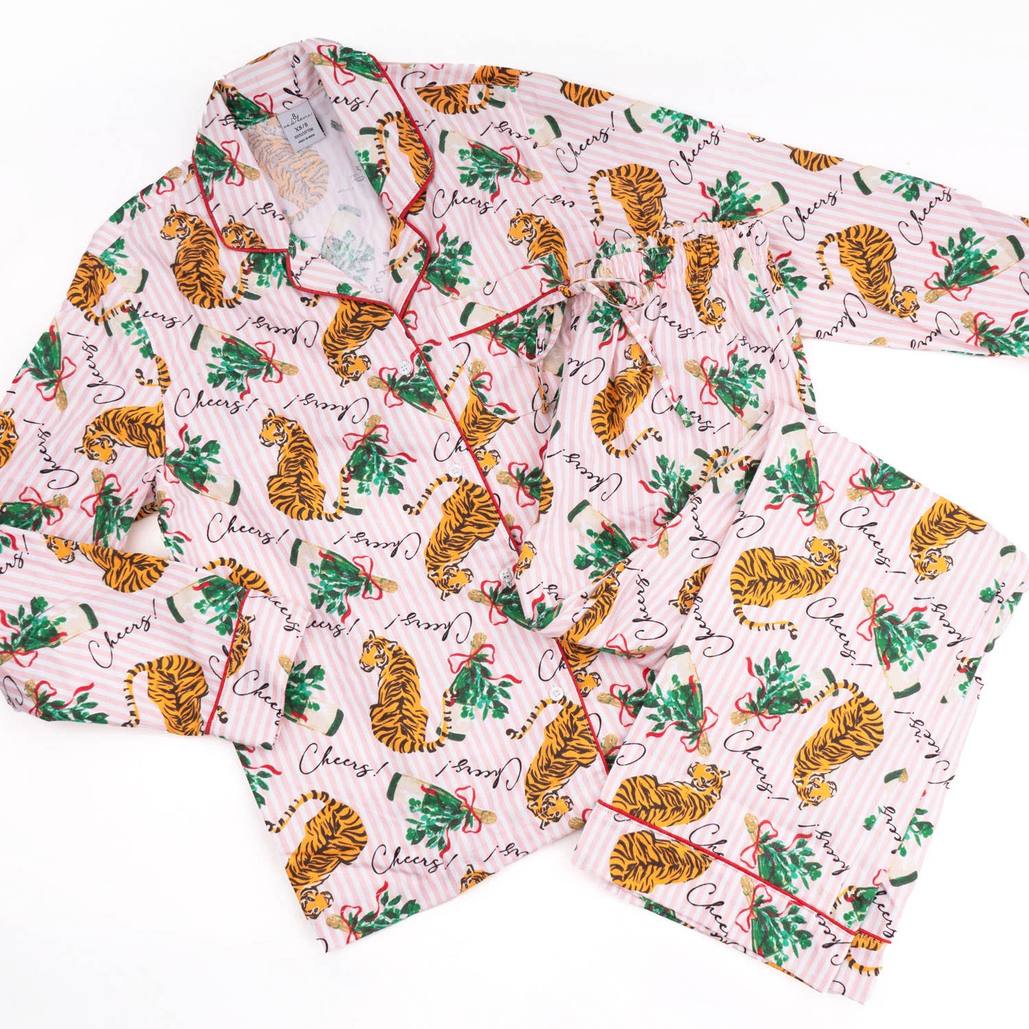 Designed for both comfort and functionality, the button-down top and adjustable drawstring pants allow for ease of movement, ensuring you can relax, sleep, or enjoy morning coffee in effortless style. Perfect for gifting, holiday mornings, or cozy nights in, these pajamas combine festive design with everyday comfort.
